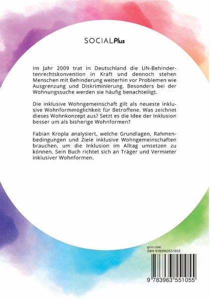 Im Jahr 2009 trat in Deutschland die UN-Behindertenrechtskonvention in Kraft und dennoch stehen Menschen mit Behinderung weiterhin vor Problemen wie Ausgrenzung und Diskriminierung. Besonders bei der Wohnungssuche werden sie häufig benachteiligt. Die inklusive Wohngemeinschaft gilt als neueste inklusive Wohnformmöglichkeit für Betroffene. Was zeichnet dieses Wohnkonzept aus? Setzt es die Idee der Inklusion besser um als bisherige Wohnformen? Fabian Kropla analysiert, welche Grundlagen, Rahmenbedingungen und Ziele inklusive Wohngemeinschaften brauchen, um die Inklusion im Alltag umsetzen zu können. Sein Buch richtet sich an Träger und Vermieter inklusiver Wohnformen.Aus dem Inhalt:-Behindertenhilfe;-UN-Behindertenrechtskonvention;-Diskriminierung bei der Wohnungssuche;-Recht auf Privatsphäre;-Sozialraumorientierung;-Barrierefreiheit