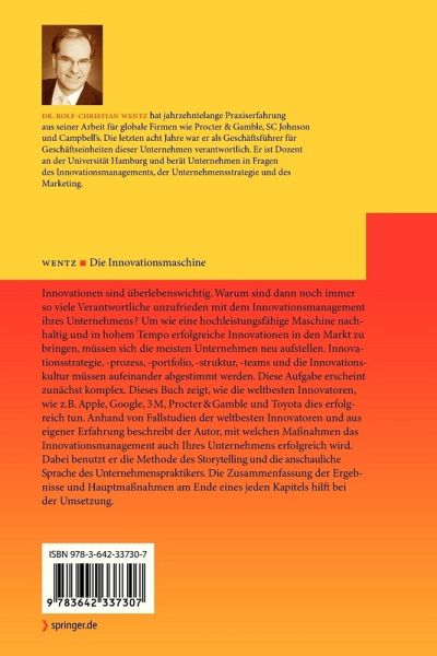 Innovationen sind überlebenswichtig. Warum sind dann noch immer so viele Verantwortliche unzufrieden mit dem Innovationsmanagement ihres Unternehmens? Um wie eine hochleistungsfähige Maschine nachhaltig und in hohem Tempo erfolgreiche Innovationen in den Markt zu bringen, müssen sich die meisten Unternehmen neu aufstellen. Innovationsstrategie, -prozess, -portfolio, -struktur, -teams und die Innovationskultur müssen aufeinander abgestimmt werden. Diese Aufgabe erscheint zunächst komplex. Dieses Buch zeigt, wie die weltbesten Innovatoren, wie z.B. Apple, Google, 3 M, Procter/Gamble und Toyota dies erfolgreich tun. Anhand von Fallstudien der weltbesten Innovatoren und aus eigener Erfahrung beschreibt der Autor, mit welchen Maßnahmen das Innovationsmanagement auch Ihres Unternehmens erfolgreich wird. Dabei benutzt er die Methode des Storytelling und die anschauliche Sprache des Unternehmenspraktikers. Die Zusammenfassung der Ergebnisse und Hauptmaßnahmen am Ende eines jeden Kapitelshilft bei der Umsetzung.
