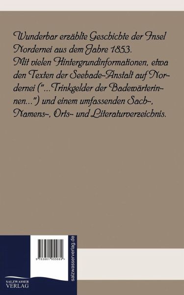 Wunderbar erzählte Geschichte der Insel Nordernei aus dem Jahre 1853. Mit vielen Hintergrundinformationen, etwa den Texten der Seebade-Anstalt auf Nordernei ("...Trinkgelder der Badewärterinnen...") und einem umfassenden Sach-, Namens-, Orts- und Literaturverzeichnis.