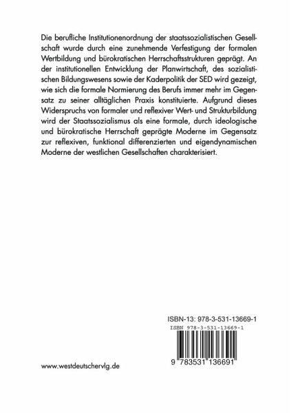 In der Studie wird gezeigt, wie die Wert- und Strukturbildung der beruflichen Institutionenordnung der DDR durch eine zunehmende Verfestigung von formaler Wertbildung und bürokratischen Organisationsstrukturen im Gegensatz zu einer reflexiven Wertbildung und eigendynamischen Strukturentwicklungen geprägt wurde. Die berufliche Institutionenordnung der DDR wird durch die Interdependenz von drei Funktionssystemen beschrieben: erstens der Planwirtschaft und des Beschäftigungssystems, zweitens des Bildungswesens und der Berufsbildung, drittens der Kaderpolitik und der Diktatur der SED. In zeitlicher Perspektive wird die Entwicklung der Institutionenordnung der DDR in drei Phasen unterteilt: erstens die Aufbauphase einer staatssozialistischen Gesellschaft sowjetischen Typs in den fünfziger Jahren, zweitens die Modernisierungs- und Reformphase der sechziger Jahre und drittens die Stabilisierungs- und Stagnationsphase des real existierenden Sozialismus der Honecker-Ära. Die Divergenz vonformalen und reflexiven Mechanismen bewirkte den für die berufliche Institutionenordnung der DDR charakteristischen Widerspruch zwischen der formalen Normierung durch rigide Organisationsstrukturen zum einen und dem faktischen Verhalten in der beruflichen Praxis zum anderen. Aufgrund dieses Widerspruchs wird der Staatssozialismus als eine formale, durch parteiliche und bürokratische Herrschaft geprägte Moderne im Gegensatz zur reflexiven, funktional differenzierten und eigendynamischen Moderne der westlichen Gesellschaften charakterisiert.