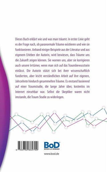 Dieses Buch erklärt, wie und was man träumt. In erster Linie geht es der Frage nach, ob paranormale Träume existieren und wie sie funktionieren. Anhand einiger Beispiele aus der Literatur und aus eigenem Erleben der Autorin wird bewiesen, dass Träume uns die Zukunft zeigen können. Sie warnen uns, aber sie korrigieren auch unsere Irrtümer, wenn man sich auf das Traumbewusstsein einlässt. Die Autorin stützt sich bei ihrer wissenschaftlich fundierten, aber leicht verständlichen Arbeit auf ihre eigenen, Jahrzehnte hindurch gesammelten Träume. Es entstand basierend auf einer paranormalen Traumstudie, die viele Jahre kostenlos im Internet einsehbar war. Selbst die Skeptiker waren nicht imstande, die Traumstudie zu widerlegen.