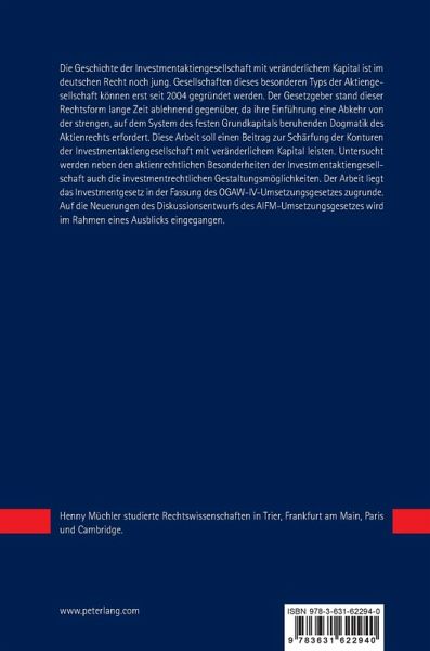 Die Geschichte der Investmentaktiengesellschaft mit veränderlichem Kapital ist im deutschen Recht noch jung. Gesellschaften dieses besonderen Typs der Aktiengesellschaft können erst seit 2004 gegründet werden. Der Gesetzgeber stand dieser Rechtsform lange Zeit ablehnend gegenüber, da ihre Einführung eine Abkehr von der strengen, auf dem System des festen Grundkapitals beruhenden Dogmatik des Aktienrechts erfordert. Diese Arbeit soll einen Beitrag zur Schärfung der Konturen der Investmentaktiengesellschaft mit veränderlichem Kapital leisten. Untersucht werden neben den aktienrechtlichen Besonderheiten der Investmentaktiengesellschaft auch die investmentrechtlichen Gestaltungsmöglichkeiten. Der Arbeit liegt das Investmentgesetz in der Fassung des OGAW-IV-Umsetzungsgesetzes zugrunde. Auf die Neuerungen des Diskussionsentwurfs des AIFM-Umsetzungsgesetzes wird im Rahmen eines Ausblicks eingegangen.