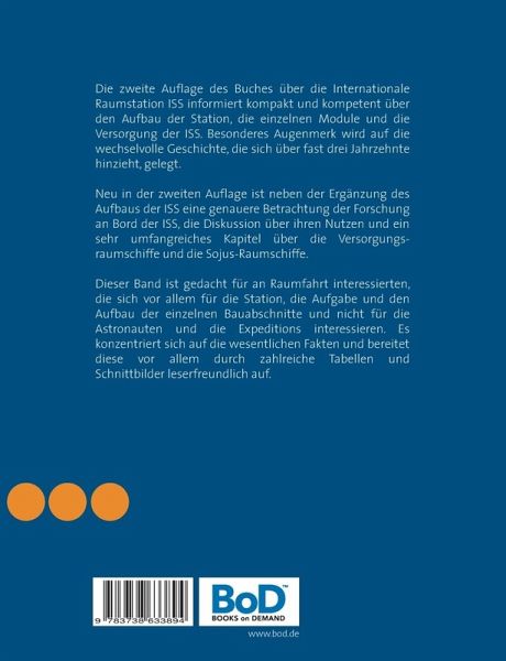 Die zweite Auflage des Buches über die Internationale Raumstation ISS informiert kompakt und kompetent über den Aufbau der Station, die einzelnen Module und die Versorgung der ISS. Besonderes Augenmerk wird auf die wechselvolle Geschichte, die sich über fast drei Jahrzehnte hinzieht, gelegt.Neu in der zweiten Auflage ist neben der Ergänzung des Aufbaus der ISS eine genauere Betrachtung der Forschung an Bord der ISS, die Diskussion über ihren Nutzen und ein sehr umfangreiches Kapitel über die Versorgungsraumschiffe und die Sojus-Raumschiffe.Dieser Band ist gedacht für an Raumfahrt interessierten, die sich vor allem für die Station, die Aufgabe und den Aufbau der einzelnen Bauabschnitte und nicht für die Astronauten und die Expeditions interessieren. Es konzentriert sich auf die wesentlichen Fakten und bereitet diese vor allem durch zahlreiche Tabellen und Schnittbilder leserfreundlich auf.