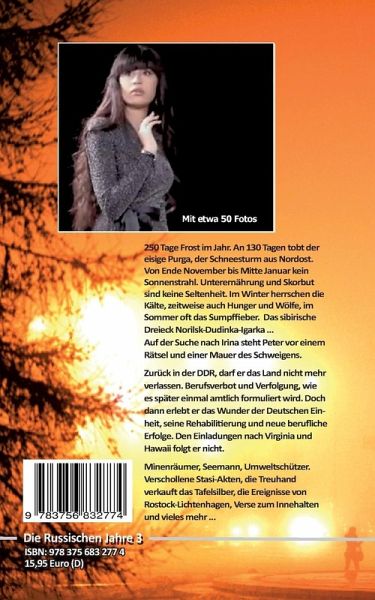 250 Tage Frost im Jahr. An 150 Tagen tobt der eisige Purga, der Schneesturm aus Nordost. Von Ende November bis bis Mitte Januar kein Sonnenstrahl. Unterernährung und Skorbut sind keine Seltenheit. Im Winter herrschen die Kälte, zeitweise auch Hunger und Wölfe, im Sommer oft das Sumpffieber. Das sibirische Dreieck Norilsk-Dudinka-Igarka. Auf der Suche nach Irina steht Peter vor einem Rätsel und einer Mauer des Schweigens.Zurück in der DDR, darf er das Land nicht mehr verlassen. Berufsverbot und Verfolgung. Doch dann erlebt er das Wunder der Deutschen Einheit, seine Rehabilitierung und neue berufliche Erfolge. Den Einladungen nach Virginia und Hawaii folgt er nicht.Verschollene Stasi-Akten, die Treuhand verkauft das Tafelsilber, die Ereignisse von Rostock-Lichtenhagen, Verse zum Innehalten und vieles mehr ...