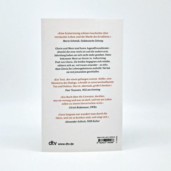 "Eine hintersinnig schöne Geschichte über versäumte Leben und die Macht des Erzählens... Monika Helfer spielt in ihrer bescheiden amüsanten Art die dringenden Fragen von Kunst und Leben im 21. Jahrhundert durch." Marie Schmidt, SZ online, 21.11.23 "Und wieder ein Text von Monika Helfer, der einen gefangen nimmt. ... Helfer, eine Meisterin des Dialogs, schreibt in unverwechselbarem Ton und Duktus. Der Text ist so verdichtet, dass er im Kopf des Lesers ausufert. Und er ist gleichzeitig so rücksichtslos gegenüber den eigenen Figuren, dass es einen fröstelt. Das ist, abermals, große Literatur." Peer Teuwsen, NZZ am Sonntag, 24.09.23 "Ein locker schwingender Roman über eine tragische Figur, die keinen roten Faden in ihrem Leben findet. ... Mit großer Virtuosität und vielen Zeitsprüngen zieht Helfer eine Pointe nach der anderen aus dem Ärmel. Mitunter schwingt auch ein untergründiger Humor mit." Franziska Wolffheim, Tagesspiegel, 02.09.2023 "Wie Monika Helfer das gelingt - die Menschen, über die sie schreibt, so nah erscheinen zu lassen, dabei aber auf jede Übertreibung und jedes Pathos zu verzichten, die sich bei solchen Zooms aufs Intimste manchmal einschleichen! Wie wohlwollend und doch auch rücksichtslos sie ihre aus dem Leben gegriffenen Figuren zeichnet ... ein Buch über die Literatur, darüber, was sie vermag und was sie darf, und wie ein Leben selbst zu einem literarischen wird." Ulrich Rüdenauer, SWR2, 27.08.23 "Himmelweit entfernt von Routine und Erfolgsmasche. Neuerlich  erweist sich Helfer als Virtuosin des abrupten Wechsels, die ihre Aufmerksamkeit auf das sogenannte Nebensächliche richtet.", Wolfgang Paterno, Profil, 27.08.2023 "In der Kürze, der Lakonie, im leicht Angedeuteten fühlt Monika Helfer sich am wohlsten. Das Seltsame ist nur: An einem kurzen Buch von ihr liest man länger als an jedem Tausend-Seiten-Wälzer. Ganz langsam nur wandert man durch die Sätze, weil sie so kostbar sind, und singt mit." Alexander Solloch, NDR Kultur, 21.08.23"Sehr raffiniert erzählt Monika Helfer diese Freundinnengeschichte ... Es ist wirklich ein Zauberkunststück, wie sie das macht - am Anfang denkt man, es ist eine kleine Geschichte und dann kommt eine Geschichte nach der anderen aus diesem kleine Schächtelchen und man fragt sich: wie schafft sie dieses Raumwunder? Das ist wirklich großartig." Meike Feßmann, Deutschlandfunk Kultur, 21.08.23 "Geheimnisvoll und stellenweise tragisch-komisch ist die Geschichte dieser jungfräulichen Freundin. Helfers prosaisch-nüchterner, niemals wehleidiger Ton geht auch diesmal direkt ins Herz." Barbara Beer, Kurier, 20.08.23