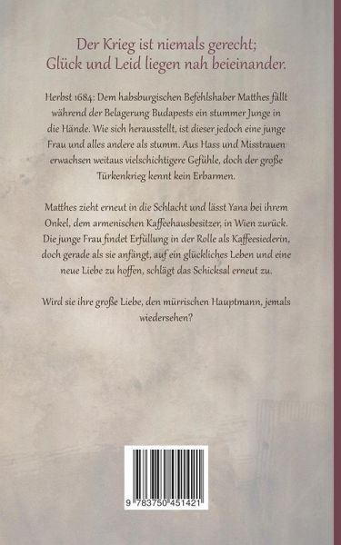 Der Krieg ist niemals gerecht; Glück und Leid liegen nah beieinander. Herbst 1684: Dem habsburgischen Befehlshaber Matthes fällt während der Belagerung Budapests ein stummer Junge in die Hände. Wie sich herausstellt, ist dieser jedoch eine junge Frau und alles andere als stumm. Aus Hass und Misstrauen erwachsen weitaus vielschichtigere Gefühle, doch der grosse Türkenkrieg kennt kein Erbarmen.Matthes zieht erneut in die Schlacht und lässt Yana bei ihrem Onkel, dem armenischen Kaffeehausbesitzer, in Wien zurück. Die junge Frau findet Erfüllung in der Rolle als Kaffeesiederin, doch gerade als sie…mehr