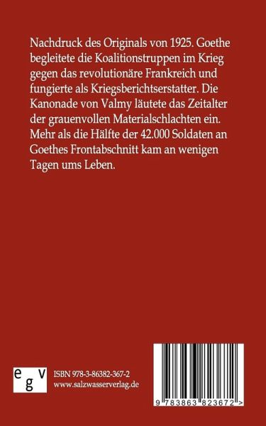 Nachdruck des Originals von 1925. Goethe begleitete die Koalitionstruppen im Krieg gegen das revolutionäre Frankreich und fungierte als Kriegsberichtserstatter. Die Kanonade von Valmy läutete das Zeitalter der grauenvollen Materialschlachten ein. Mehr als die Hälfte der 42.000 Soldaten an Goethes Frontabschnitt kam an wenigen Tagen ums Leben.