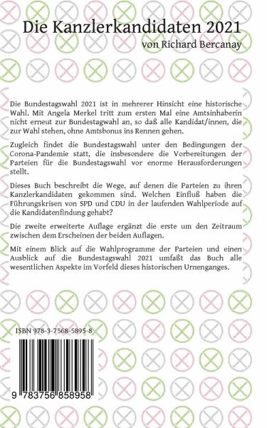 Die Bundestagswahl 2021 ist in mehrerer Hinsicht eine historische Wahl. Mit Angela Merkel tritt zum ersten Mal eine Amtsinhaberin nicht erneut zur Bundestagwahl an, so daß alle Kandidat/innen, die zur Wahl stehen, ohne Amtsbonus ins Rennen gehen.Zugleich findet die Bundestagswahl unter den Bedingungen der Corona-Pandemie statt, die insbesondere die Vorbereitungen der Parteien für die Bundestagswahl vor enorme Herausforderungen stellt.Dieses Buch beschreibt die Wege, auf denen die Parteien zu ihren Kanzlerkandidaten gekommen sind. Welchen Einfluß haben die Führungskrisen von SPD und CDU in der laufenden Wahlperiode auf die Kandidatenfindung gehabt?Die zweite erweiterte Auflage ergänzt die erste um den Zeitraum zwischen deren Erscheinen und der Bundestagswahl 2021.Mit einem Blick auf die Wahlprogramme der Parteien und einen Ausblick auf die Bundestagswahl 2021 umfaßt das Buch alle wesentlichen Aspekte im Vorfeld dieses historischen Urnenganges.