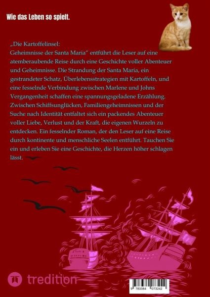Buchbeschreibung:"Die Kartoffelinsel: Geheimnisse der Santa Maria" entführt die Leser auf eine atemberaubende Reise durch eine Geschichte voller Abenteuer und Geheimnisse. Die Strandung der Santa Maria, ein gestrandeter Schatz, Überlebensstrategien mit Kartoffeln, und eine fesselnde Verbindung zwischen Marlene und Johns Vergangenheit schaffen eine spannungsgeladene Erzählung. Zwischen Schiffsunglücken, Familiengeheimnissen und der Suche nach Identität entfaltet sich ein packendes Abenteuer voller Liebe, Verlust und der Kraft, die eigenen Wurzeln zu entdecken. Ein fesselnder Roman, der den Leser auf eine Reise durch kontinente und menschliche Seelen entführt. Tauchen Sie ein und erleben Sie eine Geschichte, die Herzen höher schlagen lässt.Buchbeschreibung:"Die Kartoffelinsel: Geheimnisse der Santa Maria" entführt die Leser auf eine atemberaubende Reise durch eine Geschichte voller Abenteuer und Geheimnisse. Die Strandung der Santa Maria, ein gestrandeter Schatz, Überlebensstrategien mit Kartoffeln, und eine fesselnde Verbindung zwischen Marlene und Johns Vergangenheit schaffen eine spannungsgeladene Erzählung. Zwischen Schiffsunglücken, Familiengeheimnissen und der Suche nach Identität entfaltet sich ein packendes Abenteuer voller Liebe, Verlust und der Kraft, die eigenen Wurzeln zu entdecken. Ein fesselnder Roman, der den Leser auf eine Reise durch kontinente und menschliche Seelen entführt. Tauchen Sie ein und erleben Sie eine Geschichte, die Herzen höher schlagen lässt.