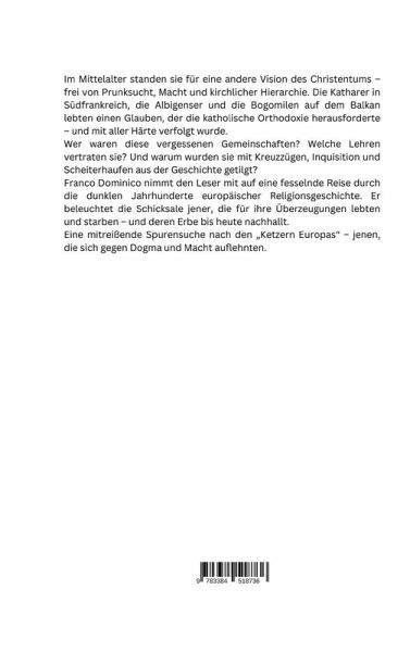 Im Mittelalter standen sie für eine andere Vision des Christentums - frei von Prunksucht, Macht und kirchlicher Hierarchie. Die Katharer in Südfrankreich, die Albigenser und die Bogomilen auf dem Balkan lebten einen Glauben, der die katholische Orthodoxie herausforderte - und mit aller Härte verfolgt wurde.Wer waren diese vergessenen Gemeinschaften? Welche Lehren vertraten sie? Und warum wurden sie mit Kreuzzügen, Inquisition und Scheiterhaufen aus der Geschichte getilgt?Franco Dominico nimmt den Leser mit auf eine fesselnde Reise durch die dunklen Jahr-hunderte europäischer Religionsgeschichte. Er beleuchtet die Schicksale jener, die für ihre Überzeugungen lebten und starben - und deren Erbe bis heute nachhallt.Eine mitreißende Spurensuche nach den "Ketzern Europas" - jenen, die sich gegen Dogma und Macht auflehnten.