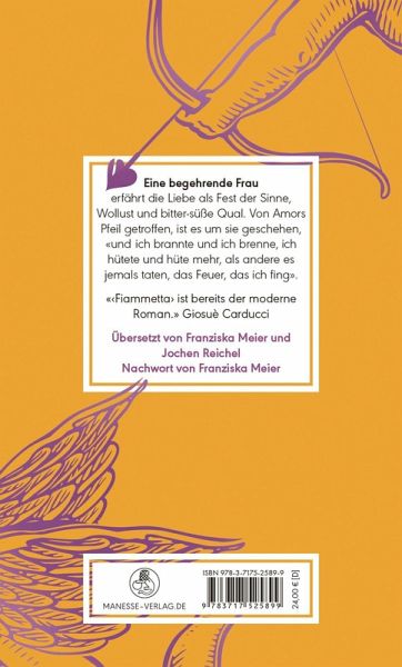 Liebesfreud und Liebesleid, Feier und Kritik des schusswütigen Amor verschränken sich in diesem grandiosen Monolog einer begehrenden Frau auf das Reizvollste. Mit Boccaccios «Klage der Madonna Fiammetta» beginnt die große Tradition der psychologischen Erzählkunst in der Weltliteratur. Die in Inbrunst Entflammte schwärmt, schmachtet und verzehrt sich, leidet, zweifelt und verzweifelt, um schließlich doch wieder zu hoffen ... Indem sie ganz unverblümt sowohl von ihrer Liebestollheit als auch von ihrem Liebeskummer erzählt, offenbart sie - bis dahin beispiellos in der christlich-abendländischen Dichtung - intimste weibliche Herzensregungen. Im Furor ihrer Klagen und Anklagen manifestiert sich «das Recht der Frauen auf eine eigene Stimme, einen eigenen Körper, auf das Ausleben ihrer Sexualität», so Franziska Meier im Nachwort. Auch deshalb sei es an der Zeit, «die 'Fiammetta' nun endlich auf Deutsch so zugänglich zu machen, wie ihr Autor sie geschrieben und konzipiert hat.»