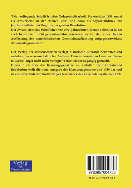Dieses Buch über die Klassengegensätze im Zeitalter der französischen Revolution stellt die neue Ausgabe der Klassengegensätze von 1789 dar und ist ein unveränderter, hochwertiger Nachdruck der Originalausgabe von 1908.