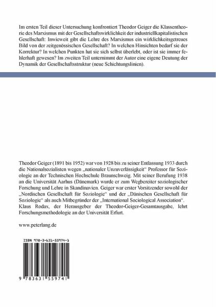Im ersten Teil dieser Untersuchung konfrontiert Theodor Geiger die Klassentheorie des Marxismus mit der Gesellschaftswirklichkeit der industriell-kapitalistischen Gesellschaft: Inwieweit gibt die Lehre des Marxismus ein wirklichkeitsgetreues Bild von der zeitgenössischen Gesellschaft? In welchen Hinsichten bedarf sie der Korrektur? In welchen Punkten hat sie sich selbst überlebt, oder ist sie immer fehlerhaft gewesen? Im zweiten Teil unternimmt der Autor eine eigene Deutung der Dynamik der Gesellschaftsstruktur (neue Schichtungslinien).