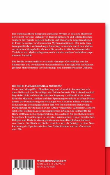 The textual and pictorial reception of classical myths in the early modern period reflected a range of different interpretive patterns and visual traditions, and evoked a counter-reaction in the form of novel comic adaptations of myth. For the first time, the study puts these "witty” images of the Gods in Italian and Northern Alpine visual arts in a broader motivational context within the discourse of literary and art theory.