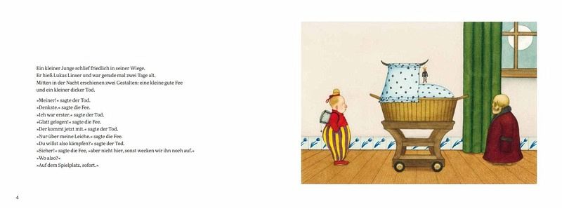 Der Tod und die kleine gute Fee beanspruchen den neugeborenen Lukas Linser jeweils für sich. Um eine Entscheidung herbeizuführen, treffen sie sich auf einem der Fantasie entsprungenen Spielplatz. Dort messen sie in zwölf spannenden Runden ihre Kräfte. Ob beim Schnick, Schnack, Schnuck, beim Lanzenstechen oder beim Wett-Hängen, stets scheint die Fee die Oberhand zu behalten. Doch der Tod gibt nicht auf und triumphiert schließlich. Was er jedoch übersieht, ist der Lauf der Zeit - während ihrer Spiele sind 99 Jahre vergangen. Leben und Sterben gehören untrennbar zusammen und niemand kann wissen, wann es zu Ende ist. Vielleicht hat man Glück und eine kleine gute Fee hält den Tod nahezu 100 Jahre in Schach, wie sie es in dieser Geschichte tut.Nikolaus Heidelbach verbindet das für viele schwere Thema mit spielerischen Charme und Witz. Er lädt Leser und Leserinnen dazu ein, über das Leben, den Tod und den Wert der Zeit nachzudenken - aber nicht zu ernst.