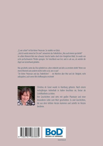 O, wie schön! rief die kleine Prinzessin. Sie strahlte vor Glück.Und ich werde immer bei Dir sein! antwortete das Rotkehlchen. Was auch immer geschieht!Im selben Moment fuhr eine schwarze Kutsche lautlos durch den Königlichen Wald. Sie wurde von sechs pechschwarzen Pferden gezogen. Der Kutschbock war leer, und es sah aus, als würden die Zügel von Geisterhand gehalten.Was geschieht, wenn das Böse plötzlich ins einbricht und Alles zu zerstören droht? Wenn von einem Moment zum anderen nichts mehr so ist, wie es war?Die kleine Prinzessin und das Rotkehlchen - ein Märchen über Mut und die Fähigkeit, nicht aufzugeben, auch wenn Alles hoffnungslos erscheint!