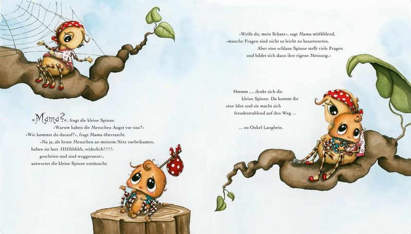 "... eine wunderschöne Mutmachgeschichte, die Kindern und auch Erwachsenen die Scheu vor Spinnen nehmen möchte." Barbara Ghaffari, Book Reviews, 26.02.2019 "Dieses Buch ist nicht nur etwas für kleine, sondern auch für ein bisschen größere Angsthasen." Julia M., meinspatz.de, 04.03.2019 "Dieses Buch ist ein kleines Entzücken." Coburger Tagblatt "Eine sehr einfühlsam erzählte, stimmungsvoll und in hellen, freundlichen Farben bebilderte Geschichte, die nicht nur die Angst vor Spinnen nimmt und neugierig auf diese eigentlich doch faszinierenden Tiere macht, sondern durch die vielen liebevollen Details in den Zeichnungen auch ein großer Spaß zum Anschauen ist." Gelnhäuser Neue Zeitung "Eine wunderschöne Mutmachgeschichte für Kinder (und Erwachsene), die sich vor Spinnen fürchten." Willkommen in Wettingen "Dieses Buch ist sowohl lesenswert als auch sehenswert und macht Kindern Spaß. Unsere unbedingte Empfehlung zum Vorlesen." Lausebande "Ein liebevoll illustriertes Bilderbuch, das die Lebenswelten von Kindergartenkindern ausgesprochen unterhaltsam inszeniert." Main-Echo, 30.05.2015