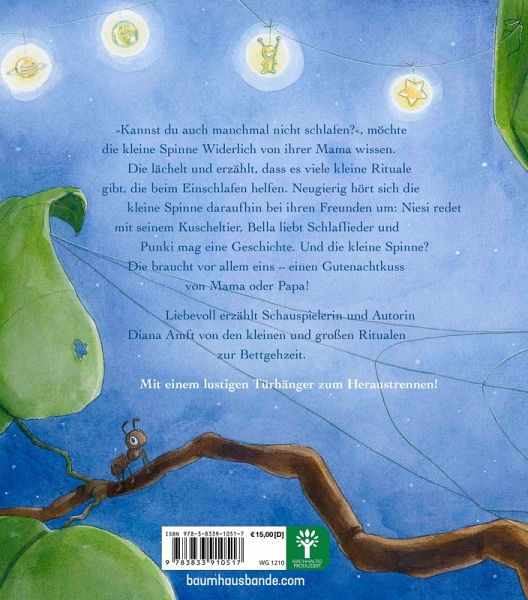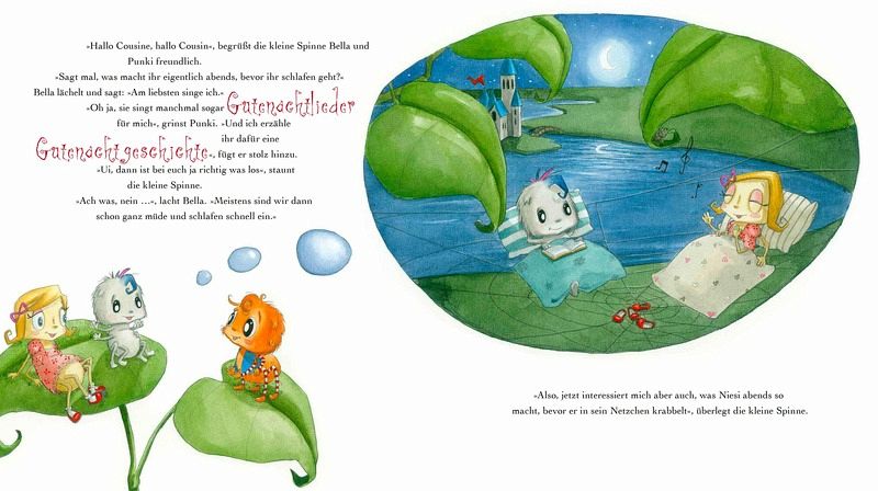 Die kleine Spinne Widerlich ist müde – aber bevor sie ins Bettchen krabbelt, schaut sie noch bei ihren Freunden vorbei. Dabei erfährt sie, wie unterschiedlich Einschlafrituale sein können – und dass jeder seinen ganz eigenen Weg ins Traumland