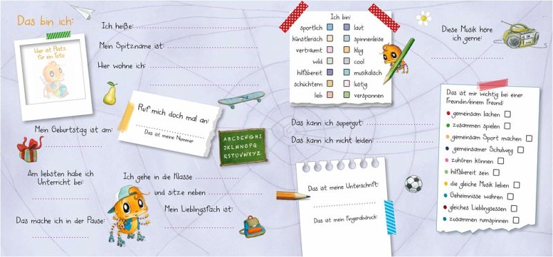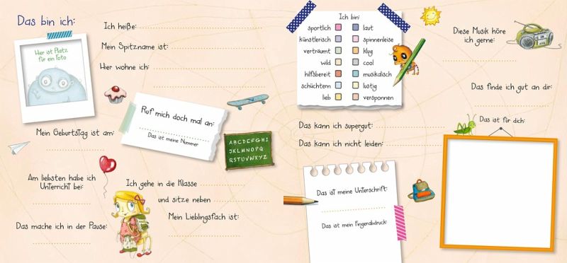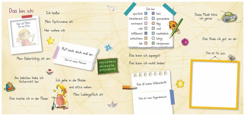 Ein fröhliches Album mit viel Platz zum Eintragen, Ausmalen, Einkleben und Kreativsein - für alle deine Schulfreunde und -freundinnenAuf den zauberhaft gestalteten Seiten dieses Albums können sich Schulfreunde und -freundinnen eintragen, ihre Lieblingsfächer verraten oder ihre Träume formulieren. Es kann geschrieben, gemalt und geklebt werden - und viele Gemeinschaftsseiten laden zum fröhlichen Mitmachen ein. Platz für Klassenfotos und Aufnahmen von Schulausflügen und Klassenfeiern gibt es auch. So entsteht ein tolles Erinnerungsalbum an die Schulzeit zum Immer-wieder-Durchblättern.Das perfekte Geschenk für alle Schulkinder