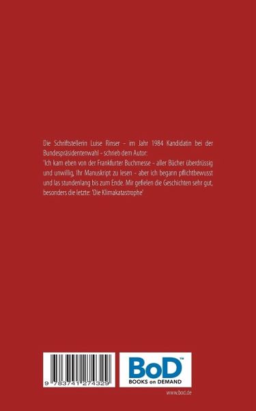 Die Schriftstellerin Luise Rinser - im Jahr 1984 Kandidatin bei der Bundespräsidentenwahl - schrieb dem Autor:'Ich kam eben von der Frankfurter Buchmesse - aller Bücher überdrüssig und unwillig, Ihr Manuskript zu lesen - aber ich begann pflichtbewusst und las stundenlang bis zum Ende. Mir gefielen die Geschichten sehr gut, besonders die letzte: 'Die Klimakatastrophe'