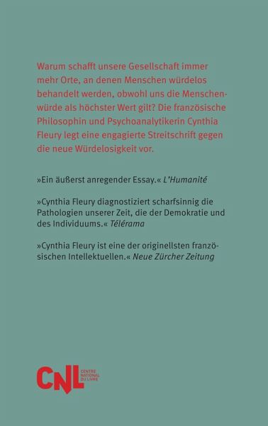Der Imperativ der Würde steht heute im Zentrum zahlreicher sozialer Bewegungen und gesellschaftlicher Debatten über Diskriminierung, Arbeit oder sogar Tierhaltung. Gleichzeitig haben sich jedoch Verletzungen der Würde und Erfahrungen der Würdelosigkeit vervielfacht: in Krankenhäusern und Pflegeheimen zum Beispiel oder in Flüchtlingslagern und Gefängnissen. Das Versprechen der Würde, das die Moderne stolz verkündete, scheint wiederholt verraten worden zu sein, wie die französische Philosophin und Psychoanalytikerin Cynthia Fleury in ihrem neuen Buch zeigt.