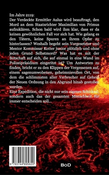 Im Jahre 2119:Der Verdeckte Ermittler Aulus wird beauftragt, den Mord an dem Staatsrichter Maximilian von Primus aufzuklären. Schon bald wird ihm klar, dass er da keinen gewöhnlichen Fall vor sich hat.Wie gelang es den Tätern, keine Spuren an ihrem Opfer zu hinterlassen? Weshalb begeht sein Vorgesetzter und Mentor Kommissar Kotter junior plötzlich und ohne jeden Grund Selbstmord? Was hat es mit der Botschaft auf sich, die auf einmal in eine Wand im Polizeipräsidium eingeritzt ist?Um Antworten zu finden, bricht er zu den Klippen der Vergessenen auf, einem sagenumwobenen, geheimnisvollen Ort, von dem die schlimmsten aller Verbrecher auf Geheiß der Neuen Ordnung in den Abgrund hinab gestoßen werden.Eine Expedition, die nicht nur sein eigenes Schicksal, sondern auch das der gesamten Menschheit für immer entscheiden soll...