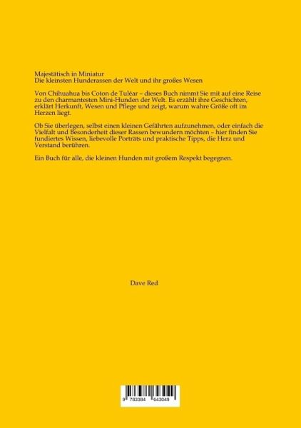 Dieses Buch ist eine liebevolle Hommage an die kleinsten Hunderassen der Welt. Es zeigt, dass wahre Größe nicht in Zentimetern oder Kilogramm gemessen wird, sondern im Charakter, Mut und der tiefen Verbundenheit zu ihren Menschen.Von Chihuahua bis Coton de Tuléar porträtiert das Buch zehn der kleinsten Rassen und beleuchtet ihre Herkunft, ihr Wesen, ihre Haltung und typische Gesundheitsaspekte. Es erklärt, was Reinrassigkeit bedeutet, worauf man bei der Anschaffung achten sollte und welche besonderen Bedürfnisse kleine Hunde haben. Ein umfangreiches Glossar, Quellen und wertvolle Hinweise zur artgerechten Haltung runden das Werk ab.Ob als Entscheidungshilfe für künftige Halter oder als liebevolle Lektüre für Hundefans - dieses Buch verbindet Wissen, Emotion und Respekt für unsere winzigen Gefährten auf eindrucksvolle Weise.