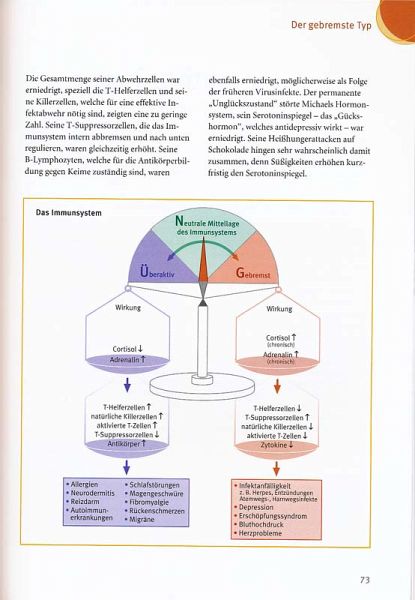 Körper, Geist und Seele sind Eins - davon gingen schon die traditionellen Heilsysteme aus, doch nachgewiesen hat es erst die Psychoneuroimmunologie (PNI). Dies ist der erste Ratgeber, der konkret aufzeigt, wie sich Lebensumstände und Gefühle auf das Immunsystem auswirken und damit auf unsere Gesundheit. Die Autoren erklären, wie es zum so genannten Overload-Syndrom kommt, bei dem unspezifische Beschwerden auftauchen, die auf gängige Behandlungsformen nicht nachhaltig ansprechen. Sie stellen drei verschiedenen Immuntypen vor, die ein jeweils typisches Verhalten im Leben und jeweils spezifische Anfälligkeiten für bestimmte Krankheiten zeigen. Finden Sie anhand von Tests heraus, welcher Immuntyp Sie sind und mit welchen speziellen hochwirksamen Methoden Sie schnell wieder frisch und leistungsfähig werden können. Dabei geht es um Lebensführung, den Umgang mit sich und anderen genauso wie um Ernährung und Bewegung. Ein innovatives Konzept, das vielen zu neuer Lebensfreude verhelfen möchte!