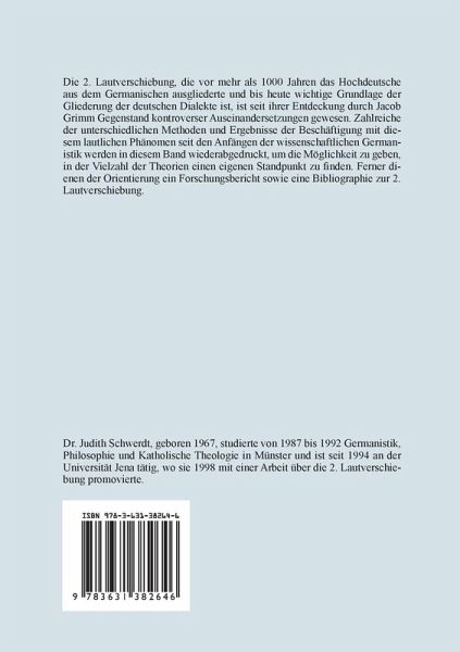 Aus dem Inhalt: Hermann Paul: 2) Das mittelfränkische Lautverschiebungsgesetz / 3) Oberdeutsch ch - k - Theodor Frings: Das Alter der Benrather Linie - Georg Baesecke: Einführung in das Althochdeutsche - N. Otto Heinertz: Eine Lautverschiebungstheorie - Walter Mitzka: Die althochdeutsche Lautverschiebung und der ungleiche fränkische Anteil - Robert Bruch: Mittelfränkische Relikte des Zwischenstadiums der Affrikata in der Lautverschiebung zur Spirans (kraits «Kreis») - Jean Fourquet: Die Nachwirkungen der ersten und der zweiten Lautverschiebungen - Otto Höfler: Die hochdeutsche Lautverschiebung und ihre Gegenstücke bei Goten, Vandalen, Langobarden und Burgundern - Heinrich Matthias Heinrichs: Lautverschiebung und Sprachschichten im Mittelalter - Norbert Wagner: König Chilperichs Buchstaben und andere Graphien - Niels Davidsen-Nielsen: A Theory of the Exceptions to the Germanic and High German Consonant Shifts - Rolf Bergmann: Froumund von Tegernsee und die Sprachschichten in Köln. Zur Diskussion der 2. Lautverschiebung - Heinrich Tiefenbach: Xanten - Essen - Köln. Untersuchungen zur Nordgrenze des Althochdeutschen an niederrheinischen Personennamen des 9. bis 11. Jahrhunderts - Wolfgang Haubrichs: Lautverschiebung in Lothringen. Zur althochdeutschen Integration vorgermanischer Toponyme der historischen Sprachlandschaft zwischen Saar und Mosel - Theo Vennemann: Bairisch, Deutsch, Germanisch - Wolfgang Laur: Hochgermanisch und Niedergermanisch. Bedenken gegenüber einer neuen Theorie zur Zweiten Lautverschiebung.
