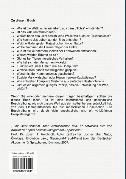 Es gibt ein naturwissenschaftliches Prinzip, das die Entwicklung der Welt vom Urknall bis hin zum Geist und zu den menschlichen Sozialordnungen durchgängig erklärt: Die Emergenz. Sie verbindet die materielle Welt mit der Welt des Geistes. Die Emergenz basiert auf der spontanen Selbstorganisation einfacher Elemente zu komplexen Systemen, die völlig neue Strukturen aufweisen, und deren kollektive Eigenschaften und Fähigkeiten ganz anders sind als die der Elemente. Die Strukturen, Eigenschaften und Fähigkeiten der Systeme lassen sich aus denen der Elemente in der Regel nicht berechnen. Die Emergenz ist in der Natur der Normalfall und nicht die Ausnahme, von den Elementarteilchen durch alle Ebenen der Welt bis hinauf in die Ebene des Geistes und der menschlichen Gesellschaft. Unsere Welt hat sich Schritt für Schritt aus emergenten Systemen entwickelt, vom Urknall bis in die Gegenwart, und entwickelt sich ständig weiter. Das Buch behandelt am Anfang die Konzepte und Begriffe der Emergenz. Anschließend ist die erste Hälfte dem Wirken der Emergenz in der unbelebten Natur gewidmet, von den fundamentalen Teilchen und Kräften, den Atomen und ihrem Aufbau, den Festkörpern, den kollektiven Quanteneffekten und den chaotischen Prozessen bis hin zu den Molekülen. Ein kleiner Ausflug in die selbstorganisierten Vorgänge des Weltalls darf natürlich nicht fehlen. In der zweite Hälfte wird das Wirken der Selbstorganisation in der Welt der Lebewesen beschrieben, von der Entstehung und Entwicklung des Lebens über Viren, Bakterien, Pflanzen und Tiere bis zum Menschen, seinem Geist und der menschlichen Gesellschaft. Diese Entwicklung hat nachweislich nicht auf der Basis des blinden Zufalls von Mutationen und der Selektion beim Kampf ums Dasein stattgefunden. Sie ist sehr viel stärker durch kooperative Prozesse der Selbstorganisation wie Symbiosen, Ko-Evolutionen und soziale Kooperationen bestimmt worden. Die Kraft der Selbstorganisation und der Erfolg der emergenten Systeme kommt aus der großen Anzahl und Vielfalt der Elemente, die symbiotisch zusammenwirken. Es ist höchste Zeit, diese Erkenntnis zum Allgemeingut zu machen und die ethischen und moralischen Regeln der menschlichen Gesellschaft danach neu auszurichten."...ein sehr schöner, sehr verständlicher Text. Er entwickelt sich von Kapitel zu Kapitel bestens und geradezu spannend!" Prof. Dr. Josef H. Reichholf, Autor zahlreicher Bücher und Siegmund-Freud-Preisträger der Dt. Akad. f. Sprache und Dichtung.