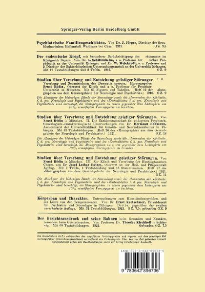 Die heute geltenden Anschauungen über Kretinismus.- Erster Teil. Bedeutung der Rasse für Vorkommen und Verbreitung des Kretinismus. Plinius, les Cagots; Affenmenschen (Carl Vogt); Klebs; Virchow; Kutschera; Kretinismus bei Juden.- I. Geschlecht der Kretinen.- II. Heimat der Kretinen.- III. Alter der Kretinen.- IV. Zeitliche (historische) Schwankungen im Auftreten des Kretinismus.- V. Räumliche Ausbreitung des Kretinismus.- VI. Kretinismus bei Tieren.- Rekapitulation.- Zweiter Teil. Erscheinungen und Komplikationen des Kretinismus. Versuch einer Anthropologie der Kretinen.- Definition des Kretinismus.- Formen des Kretinismus.- Gang der Untersuchung.- Erster Abschnitt. Äußere Erscheinung der Kretinen.- Zweiter Abschnitt.- Osteologie der Kretinen.- Schädel.- Skelett der oberen Extremität.- Becken.- Skelett der unteren Extremität.- Die Körperproportionen beim Kretinismus.- Epikrise des osteologischen Teils.- Dritter Abschnitt.- Ergologie der Kretinen.- Aus Geschichte und Sage.- Vierter Abschnitt.- Krankheiten der Kretinen.- Dritter Teil. Wesen und Ursachen der kretinischen Entartung nebst Bemerkungen über Differentialdiagnostik und Prognose.- Wesen der Entartung.- Variabilitätskurve.- Ursachen der Entartung.- Zur Diagnose des Kretinismus.- Die Prognose des Kretinismus.- Vierter Teil. Bestrebungen zur Ausrottung des Kretinismus.- A. Behandlung der kretinischen Individuen.- B. Prophylaktische Maßnahmen.- Erklärung der Tafeln.