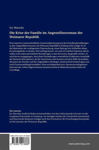 Eine intensive wissenschaftliche Auseinandersetzung mit den Familiendarstellungen in den Angestelltenromanen der Weimarer Republik ist bislang nicht erfolgt. Es ist die Motivation der vorliegenden Untersuchung, einen Beitrag zum Schließen dieser Forschungslücke zu leisten. Die Leitfrage lautet, wie und mit welcher Intention die Familien und andere persönliche Beziehungen in den Romanen dargestellt werden. Es wird davon ausgegangen, dass diese Darstellungen wesentliche Funktionen innerhalb der Romane übernehmen, da die Autorinnen und Autoren mit ihrer Hilfe die prekäre Situation der Familie und der Angestellten offenlegen, beide kritisch hinterfragen und auch Zusammenhänge herstellen. Dem soziologischen bzw. literatursoziologischen Interesse der Arbeit folgend dienen kontextorientierte Methodenansätze dabei als Grundlage.