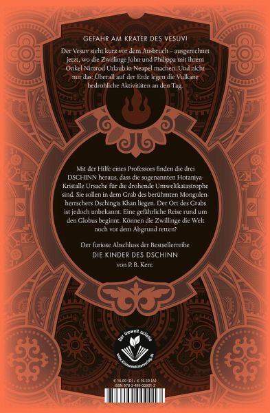 Der Vesuv steht kurz vor dem Ausbruch - ausgerechnet jetzt, wo die Dschinn-Zwillinge John und Philippa mit ihrem Onkel Nimrod Urlaub in Neapel machen. Und nicht nur das: Überall auf der Erde legen die Vulkane bedrohliche Aktivitäten an den Tag. Mit der Hilfe eines isländischen Professors finden die drei Dschinn heraus, dass die sogenannten Hotaniya-Kristalle Ursache für die drohende Umweltkatastrophe sind. Sie sollen in dem Grab des berühmten Mongolenherrschers Dschingis Khan liegen. Der Ort des Grabs ist jedoch unbekannt. Eine gefährliche Reise rund um die Welt beginnt. Mehr als einmal schweben John, Philippa und ihre Helfer in Lebensgefahr. Und dann erfahren sie auch noch, dass einer alten Prophezeiung gemäß die Welt nur gerettet werden kann, wenn sich ein Dschinn-Zwillingspaar freiwillig opfert!