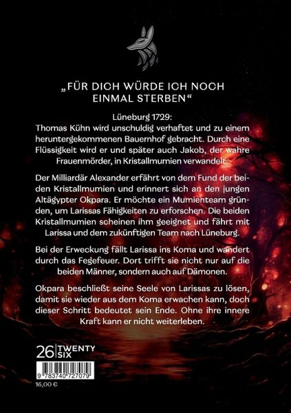 Lüneburg 1729: Thomas Kühn wird unschuldig verhaftet und zu einem heruntergekommenen Bauernhof gebracht. Durch eine Flüssigkeit wird er und später auch Jakob, der wahre Frauenmörder, in Kristallmumien verwandelt.Alexander erfährt von dem Fund der beiden Kristallmumien und erinnert sich an den jungen Altägypter Okpara. Er möchte ein Mumienteam gründen um Larissas Fähigkeiten zu erforschen. Die beiden Kristallmumien scheinen ihm geeignet und fährt mit Larissa und dem zukünftigen Team nach Lüneburg.Bei der Erweckung fällt Larissa ins Koma und wandert durch das Fegefeuer. Dort trifft sie nicht nur auf die beiden Männer, sondern auch auf Dämonen.Okpara beschließt seine Seele von Larissas zu lösen, damit sie wieder aus dem Koma erwachen kann, doch dieser Schritt bedeutet sein Ende. Ohne ihre innere Kraft kann er nicht weiterleben.