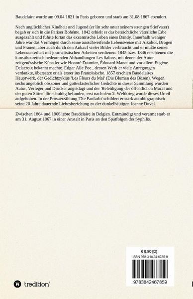 Charles Baudelaire (1821-67) hat überwiegend in Paris gelebt, wo er das väterliche Erbe als Großstadtdandy durchbrachte. Er war auch tätig als Kunstkritiker, übersetzte Poe und entdeckte die Musik Richard Wagners für Frankreich.