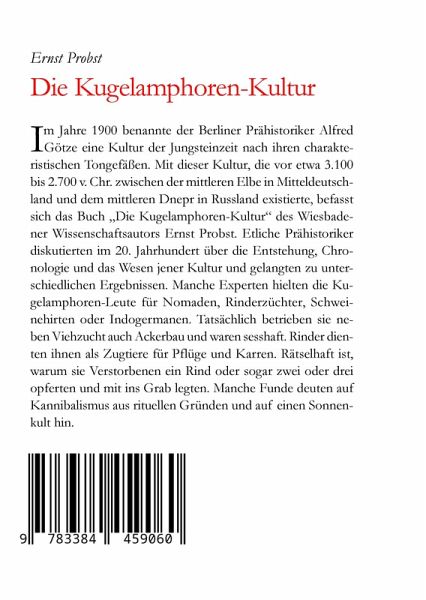 Im Jahre 1900 benannte der Berliner Prähistoriker Alfred Götze eine Kultur der Jungsteinzeit nach ihren charakteristischen Tongefäßen. Mit dieser Kultur, die vor etwa 3.100 bis 2.700 v. Chr. zwischen der mittleren Elbe in Mitteldeutschland und dem mittleren Dnepr in Russland existierte, befasst sich das Buch "Die Kugelamphoren-Kultur" des Wiesbadener Wissenschaftsautors Ernst Probst. Etliche Prähistoriker diskutierten im 20. Jahrhundert über die Entstehung, Chronologie und das Wesen jener Kultur und gelangten zu unterschiedlichen Ergebnissen. Manche Experten hielten die Kugelamphoren-Leute für Nomaden, Rinderzüchter, Schweinehirten oder Indogermanen. Tatsächlich betrieben sie neben Viehzucht auch Ackerbau und waren sesshaft. Rinder dienten ihnen als Zugtiere für Pflüge und Karren. Rätselhaft ist, warum sie Verstorbenen ein Rind oder sogar zwei oder drei opferten und mit ins Grab legten. Manche Funde deuten auf Kannibalismus aus rituellen Gründen und auf einen Sonnenkult hin. Ernst Probst veröffentlichte 1991 das Buch "Deutschland in der Steinzeit". 2019 befasste er sich mit einzelnen Kulturen und Kulturstufen der Steinzeit.