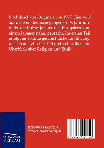 Nachdruck des Originals von 1907. Hier wird aus der Zeit des ausgegangenen 19. Jahrhunderts die Kultur Japans den Europäern von einem Japaner näher gebracht. Im ersten Teil erfolgt eine kurze geschichtliche Einführung, danach analytischer Teil und schließlich ein Überblick über Religion und Ethik.