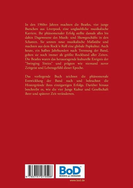 In den 1960er Jahren machten die Beatles, vier junge Burschen aus Liverpool, eine unglaubliche musikalische Karriere. Ihr phänomenaler Erfolg stellte damals alles bis dahin Dagewesene des Musik- und Showgeschäfts in den Schatten. Sie setzten neue musikalische Maßstäbe und machten aus dem Rock'n Roll eine globale Popkultur. Auch heute, ein halbes Jahrhundert nach Trennung der Band, gelten sie noch immer als größte Rockband aller Zeiten. Die Beatles waren das herausragende kulturelle Ereignis der "Swinging Sixties" und prägten wie niemand zuvor Zeitgeist und Lebensgefühl dieser Epoche.Das vorliegende Buch zeichnet die phänomenale Entwicklung der Band nach und beleuchtet die Hintergründe ihres einzigartigen Erfolgs. Darüber hinaus beschreibt es, wie die vier Jungs Kultur und Gesellschaft ihrer und späterer Zeit veränderten.
