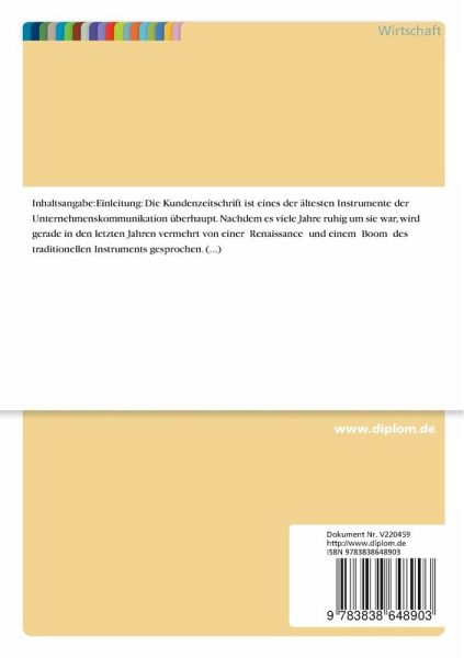 Die Kundenzeitschrift ist eines der ältesten Instrumente der Unternehmenskommunikation überhaupt. Nachdem es viele Jahre ruhig um sie war, wird gerade in den letzten Jahren vermehrt von einer Renaissance und einem Boom des traditionellen Instruments gesprochen. Um so verwunderlicher ist es, dass nur sehr wenig wissenschaftliche Literatur zu diesem Thema existiert und das Medium auch in einschlägigen Werken kaum Beachtung findet, obwohl die steigende Zahl der Titel ihre praktische Bedeutung eindrucksvoll belegen. Diese Arbeit soll deshalb einen Beitrag zur Schließung dieser Wissenslücke leisten, indem sie zum grundsätzlichen Verständnis der Kundenzeitschrift beiträgt.