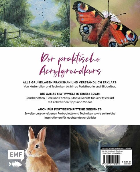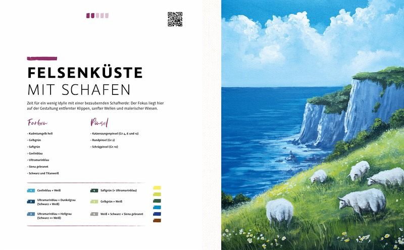 Alle Grundlagen zu Farbe, Technik und MaterialienMit bebilderten Schritt-für-Schritt-Anleitungen und Zeitraffervideos zum fertigen Acryl-Motiv