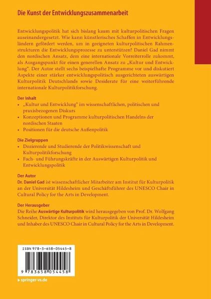 Entwicklungspolitik hat sich bislang kaum mit kulturpolitischen Fragen auseinandergesetzt. Wie kann künstlerisches Schaffen in Entwicklungsländern gefördert werden, um in geeigneten kulturpolitischen Rahmenstrukturen die Entwicklungsprozesse zu unterstützen? Daniel Gad nimmt den nordischen Ansatz, dem eine internationale Vorreiterrolle zukommt, als Ausgangspunkt für einen generellen Ansatz zu "Kultur undEntwicklung". Der Autor stellt sechs beispielhafte Programme vor und diskutiert Aspekte einer stärker entwicklungspolitisch ausgerichteten auswärtigen Kulturpolitik Deutschlands sowie Desiderate für eine weiterführende internationale Kulturpolitikforschung.