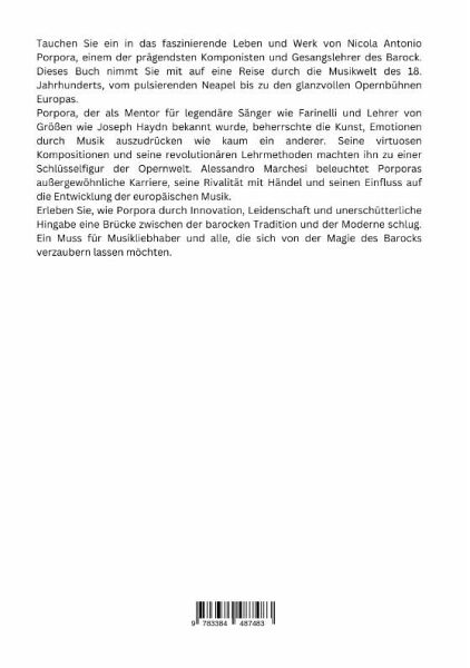 Tauchen Sie ein in das faszinierende Leben und Werk von Nicola Antonio Porpora, einem der prägendsten Komponisten und Gesangslehrer des Barock. Dieses Buch nimmt Sie mit auf eine Reise durch die Musikwelt des 18. Jahrhunderts, vom pulsierenden Neapel bis zu den glanzvollen Opernbühnen Europas.Porpora, der als Mentor für legendäre Sänger wie Farinelli und Lehrer von Größen wie Joseph Haydn bekannt wurde, beherrschte die Kunst, Emotionen durch Musik auszudrücken wie kaum ein anderer. Seine virtuosen Kompositionen und seine revolutionären Lehrmethoden machten ihn zu einer Schlüsselfigur der Opernwelt. Alessandro Marchesi beleuchtet Porporas außergewöhnliche Karriere, seine Rivalität mit Händel und seinen Einfluss auf die Entwicklung der europäischen Musik.Erleben Sie, wie Porpora durch Innovation, Leidenschaft und unerschütterliche Hingabe eine Brücke zwischen der barocken Tradition und der Moderne schlug. Ein Muss für Musikliebhaber und alle, die sich von der Magie des Barocks verzaubern lassen möchten.