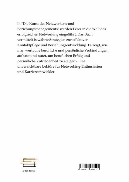 In "Die Kunst des Netzwerkens und Beziehungsmanagements" werden Leser in die Welt des erfolgreichen Networking eingeführt. Das Buch vermittelt bewährte Strategien zur effektiven Kontaktpflege und Beziehungsentwicklung. Es zeigt, wie man wertvolle berufliche und persönliche Verbindungen aufbaut und nutzt, um beruflichen Erfolg und persönliche Zufriedenheit zu steigern. Eine unverzichtbare Lektüre für Networking-Enthusiasten und Karriereentwickler.