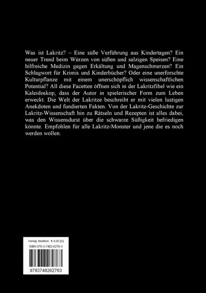 Was ist Lakritz? - Eine süße Verführung aus Kindertagen? Ein neuer Trend beim Würzen von süßen und salzigen Speisen? Eine hilfreiche Medizin gegen Erkältung und Magenschmerzen? Ein Schlagwort für Krimis und Kinderbücher? Oder eine unerforschte Kulturpflanze mit einem unerschöpflich wissenschaftlichen Potential? All diese Facetten öffnen sich in der Lakritzfibel wie ein Kaleidoskop, dass der Autor in spielerischer Form zum Leben erweckt. Die Welt der Lakritze beschreibt er mit vielen lustigen Anekdoten und fundierten Fakten. Von der Lakritz-Geschichte zur Lakritz-Wissenschaft hin zu Rätseln und Rezepten ist alles dabei, was den Wissensdurst über die schwarze Süßigkeit befriedigen könnte. Empfohlen für alle Lakritz-Monster und jene die es noch werden wollen.