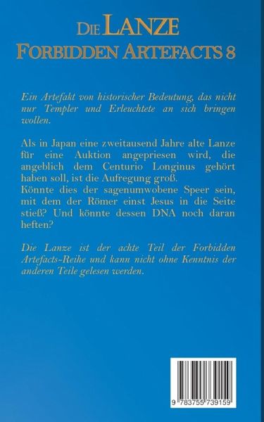 Ein Artefakt von historischer Bedeutung, das nicht nur Templer und Erleuchtete an sich bringen wollen.Als in Japan eine zweitausend Jahre alte Lanze für eine Auktion angepriesen wird, die angeblich dem Centurio Longinus gehört haben soll, ist die Aufregung groß.Könnte dies der sagenumwobene Speer sein, mit dem der Römer einst Jesus in die Seite stieß? Und könnte dessen DNA noch daran heften?Die Lanze ist der achte Teil der Forbidden Artefacts-Reihe und kann nicht ohne Kenntnis der anderen Teile gelesen werden.