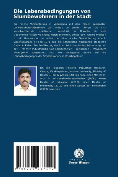 Die rasche Verstädterung in Verbindung mit dem Fehlen geeigneter Umweltschutzmaßnahmen gibt Anlass zu ernster Sorge. Die sich verschlechternde städtische Umwelt ist die Ursache für viele Gesundheitsrisiken wie Krebs, Herzkrankheiten, Stress usw. Andhra Pradesh ist ein Bundesstaat in Indien, der eine rasche Verstädterung erlebt. Visakhapatnam ist seit 1971 das am schnellsten wachsende städtische Gebiet in Indien. Die Bevölkerung der Stadt ist in den letzten Jahren aufgrund der raschen Industrialisierung nochschneller gewachsen . Vordiesem Hintergrund konzentriert sich die vorliegende Studie auf die Lebensbedingungen der Stadtbewohner in Visakhapatnam.