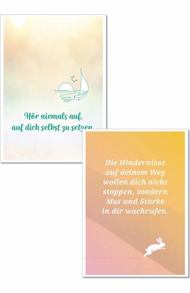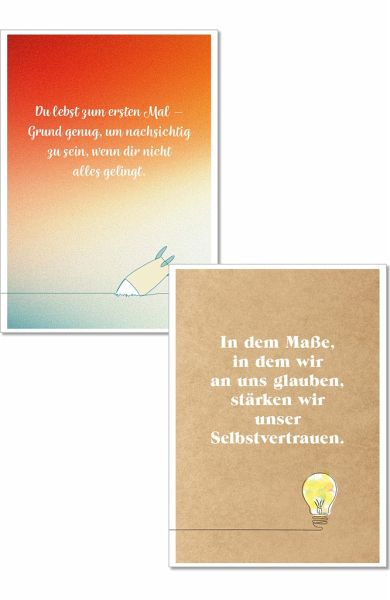 Das Glück wird dir geschenkt. Du musst es nur annehmen.Ein hochwertiges Postkartenbuch mit zehn verschiedenen Postkarten mit einzigartig illustrierten Oneline-Motiven. Mit mutmachenden Denkanstößen über Selbstvertrauen, Selbstliebe und Akzeptanz und viel Platz für deine persönlichen Wünsche.Die Karten haben das bekannte Postkartenformat von 14,8 cm x 10,5 cm und sind am linken Rand wie ein Buch zusammengeleimt - so bilden sie ein wunderschönes Buch zum Verschenken und jede Karte ist ganz leicht heraustrennbar, zum Aufhängen, Verschenken oder Verschicken.So sind sie ein besonderes Geschenk an liebe Menschen oder an dich selbst.Geschrieben und zusammengestellt von den Autorinnen und Autoren des Lebensfreude-Kalenders: Doris Wolf, Rolf Merkle und Maja Günther.
