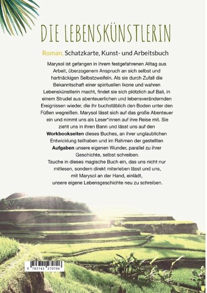 Marysol ist gefangen in ihrem festgefahrenen Alltag aus Arbeit, überzogenem Anspruch an sich selbst und hartnäckigen Selbstzweifeln. Als sie durch Zufall die Bekanntschaft einer spirituellen Ikone und wahren Lebenskünstlerin macht, findet sie sich plötzlich auf Bali, in einem Strudel aus abenteuerlichen und lebensverändernden Ereignissen wieder, die ihr buchstäblich den Boden unter den Füßen wegreißen. Marysol lässt sich auf das große Abenteuer ein und nimmt uns als Leserinnen und Leser auf ihre Reise mit. Sie zieht uns in ihren Bann und lässt uns auf den Workbookseiten dieses Buches, an ihrer unglaublichen Entwicklung teilhaben und im Rahmen der gestellten Aufgaben unsere eigenen Wunder, parallel zu ihrer Geschichte, selbst schreiben.Tauche in dieses magische Buch ein, das uns nicht nur mitlesen, sondern direkt miterleben lässt und uns, mit Marysol an der Hand, einlädt, unsere eigene Lebensgeschichte neu zu schreiben.Das Buch beinhaltet, neben dem Romanteil, einen Selbstlernerkurs, der dir als Leser_in die grundlegenden Fragen rund um das Thema individuelle Persönlichkeitsentwicklung stellt und dich zu immer neuen Herausforderungen einlädt. Du findest auf insgesamt 138 farbigen Seiten eine Mischung aus Workbookanteilen, Kunst, motivierenden Affirmationen und Raum für eigene Gedanken. Dabei geht es beispielsweise um dein "Warum", beziehungsweise deine Werte, alte Glaubenssätze oder auch verschiedenste Anregungen zu den Themen Selbst- und Körperliebe.Informationen zu der E-Book Version:Es gibt in der Taschenbuch Version immer wieder Aufgaben, bei denen die Leser_innen aufgefordert werden, direkt in das Buch zu schreiben, es folglich als Journal/Arbeitsbuch zu verwenden. Diese Leerstellen, die von den Leser_innen genutzt werden können, tauchen so auch in der E-Book Variante auf. Der Workbookanteil muss somit eigenständig in einer separaten Kladde oder in einem Tagebuch bearbeitet werden. Die E-Book Version ist aus diesem Grund zu einem wesentlich geringerenPreis zu erwerben.
