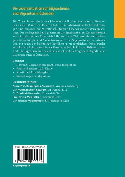 Die Zuwanderung der letzten Jahrzehnte stellt einen der zentralen Prozesse des sozialen Wandels in Österreich dar. In sozialwissenschaftlichen Erhebungen sind Personen mit Migrationshintergrund jedoch meist unterrepräsentiert. Der vorliegende Band präsentiert die Ergebnisse einer Zusatzerhebung zum Sozialen Survey Österreich 2016, mit dem Ziel, zentrale Werthaltungen, Einstellungen und Verhaltensweisen von Zugewanderten zu erfassen und mit jenen der heimischen Bevölkerung zu vergleichen. Dabei werden verschiedene Lebensbereiche wie Familie, Arbeit, Politik und Religion diskutiert. Die Ergebnisse werfen ein neues Licht auf die Frage der Integration der Zugewanderten in Österreich.