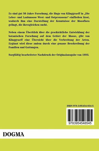 Es sind gut 50 Jahre Forschung, die Hugo von Klinggraeff in Die Leber- und Laubmoose West- und Ostpreussens einfließen lässt, wodurch ihm eine Darstellung der Kenntnisse der Moosflora gelingt, die ihresgleichen sucht.